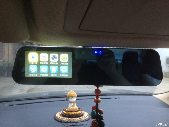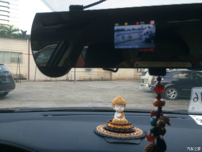 奇葩的設計, 顯示屏在后視鏡的正中間, 畫面不流暢,我等紅燈的時候仔細看過,行人稍微快一些的過馬路,畫面里已經就是無影腿了。視角范圍小, 基本只能看到車頭的一半。