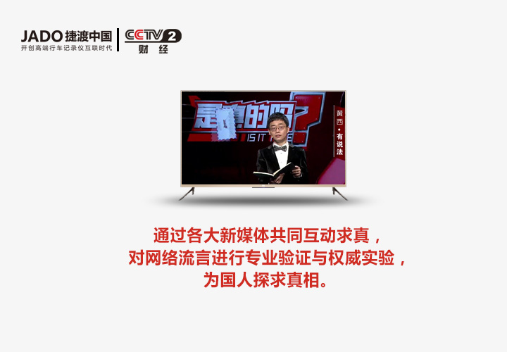 6月以來,《是真的嗎?》節目出現了新的成員——JADO捷渡中國,這也是第一個登陸該節目的行車記錄儀品牌。之所以選擇《是真的嗎?》這個平臺,也正是看中了該節目的上乘的品質以及超高的收視率。