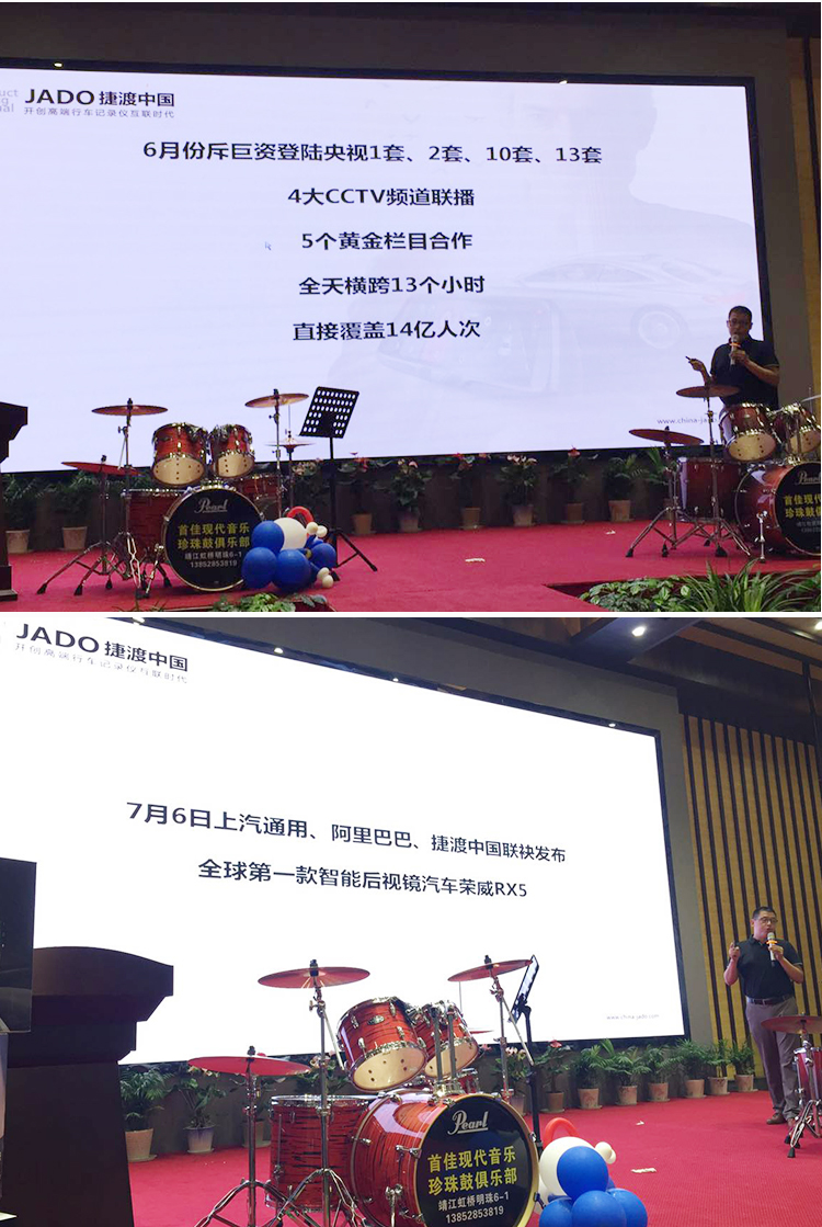 晚宴上,由揚(yáng)州天泓汽車貿(mào)易有限公司總經(jīng)理施德春先生上臺(tái)為大家介紹JADO捷渡VSeries遠(yuǎn)界系列產(chǎn)品。