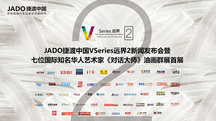 2016年10月14日下午,JADO捷渡中國攜手7位全球杰出華人藝術(shù)家在上海外灘半島美術(shù)館舉行“互聯(lián)網(wǎng)+全屏智能后視鏡‘VSeries遠(yuǎn)界2’新聞發(fā)布會暨7位全球杰出華人藝術(shù)家《對話大師》油畫群展首展”。