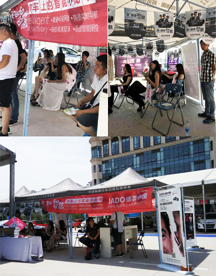 JADO捷渡中國蘇北片區戰略合作伙伴:揚州天泓汽車貿易有限公司,作為此次活動行車記錄儀官方唯一指定贊助商,應邀參加。為回饋廣大車主,特精心準備了別致的體驗區,展出了V660、V690S等多款2017年熱銷智能行車記錄儀,所有參展的顧客都可以現場體驗。