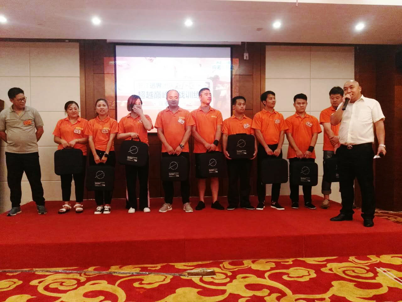 晚上,杭州肯諾汽車用品有限公司副總經理徐成榮先生為獲勝組頒獎,并表示:不忘初心,砥勵前行。祝愿所有優秀的浙江遠界團隊,在時代的大舞臺上迸發出金子一樣的光芒,成為耀眼的先鋒。