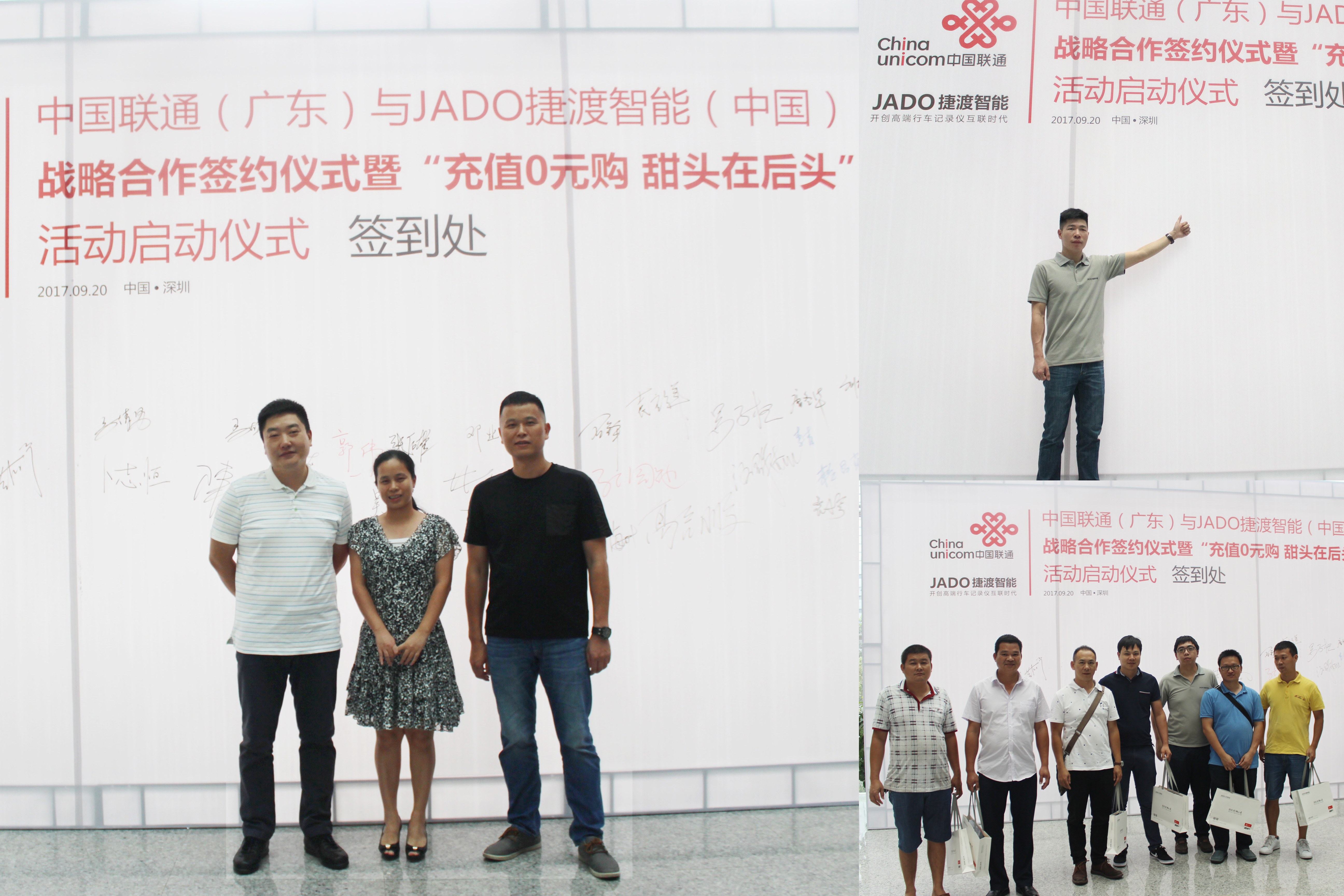 2017年9月20日,中國聯通(廣東)與JADO捷渡智能(中國)戰略合作簽約儀式,暨“充值0元購,甜頭在后頭”活動儀式在深圳聯通大廈圓滿落下帷幕。根據協議,雙方將在基礎通信與產品、物聯網新技術應用等方面深入合作,中國聯通(廣東)將為JADO捷渡智能(中國)提供定制化的物聯網通信解決方案和優質服務,共同促進行業物聯網的智慧升級發展。