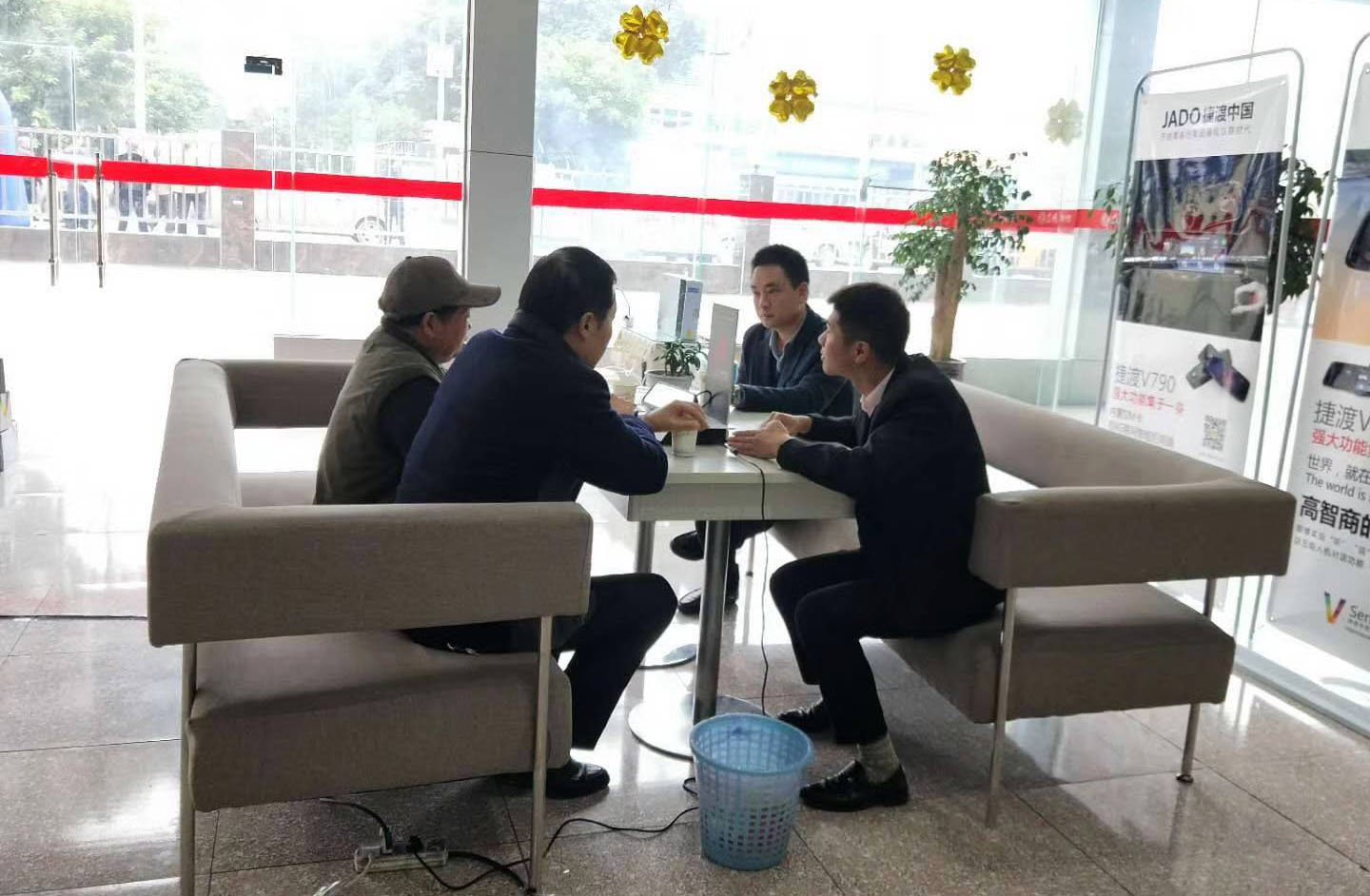 活動首日早上,眾多車主來到現場。隨著時間的推移,整個店內人聲鼎沸,摩肩接踵,咨詢和下單的車主絡繹不絕??梢姶笠氐能囍鲗Ρ敬位顒邮株P注,也是對JADO捷渡智能(中國)品牌的肯定與認可。