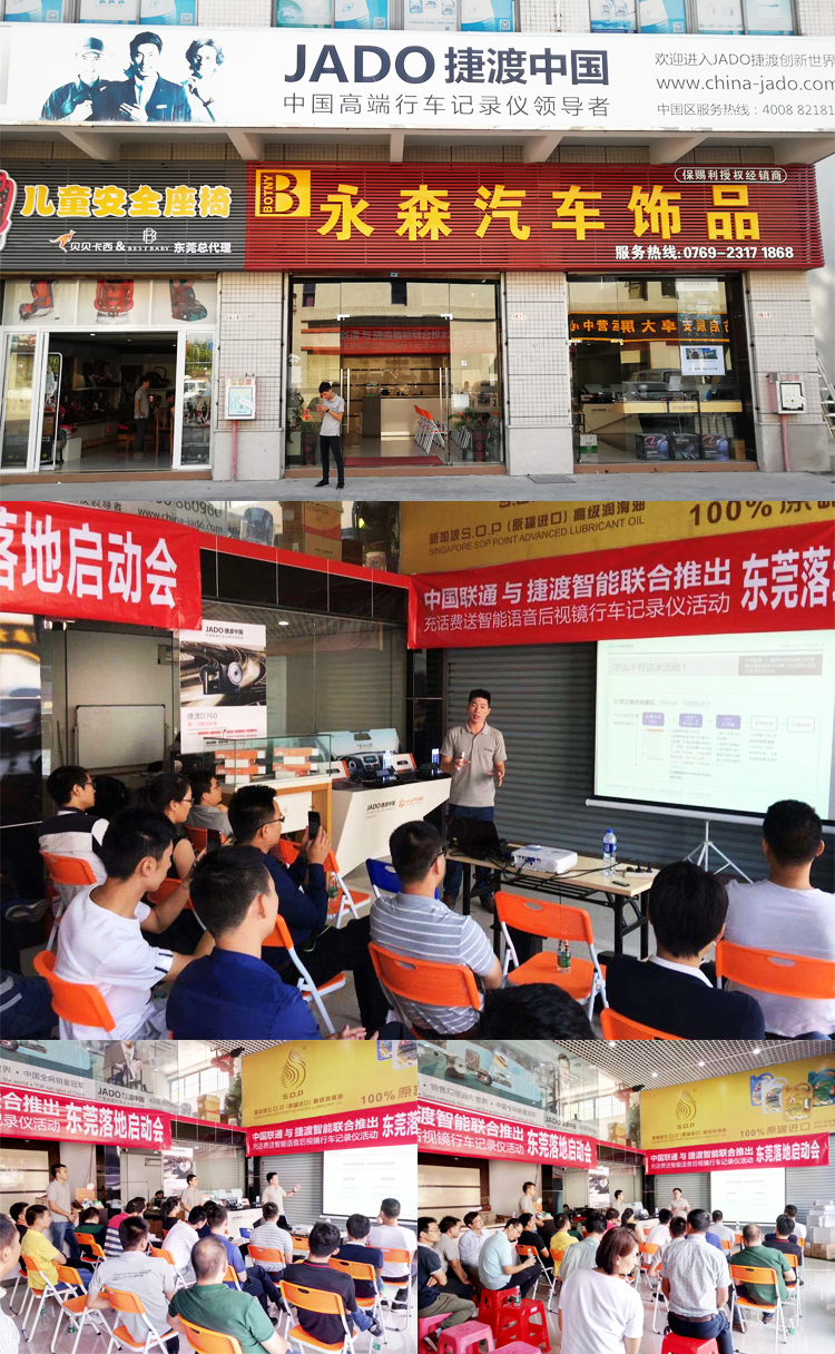 據悉,參加此次啟動會的有:中國聯通(廣東)深圳分公司領導、JADO捷渡智能(中國)南部戰區第一特戰組負責人、JADO捷渡智能(中國)東莞戰略合作伙伴永森汽車用品公司領導以及當地50多位戰略合作伙伴,集聚一堂。從終端活動的組織策劃、實際執行以及后期跟蹤做了統一部署和安排,以保障給車主帶來更完美的體驗。