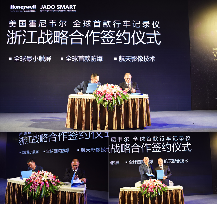 JADO捷渡智能(中國)營銷中心總經理陳問文先生與杭州肯諾汽車用品有限公司總經理徐善振先生進行了霍尼韋爾行車記錄儀在浙江地區的簽約授權儀式,這標志著霍尼韋爾行車記錄儀開啟了浙江區域市場。