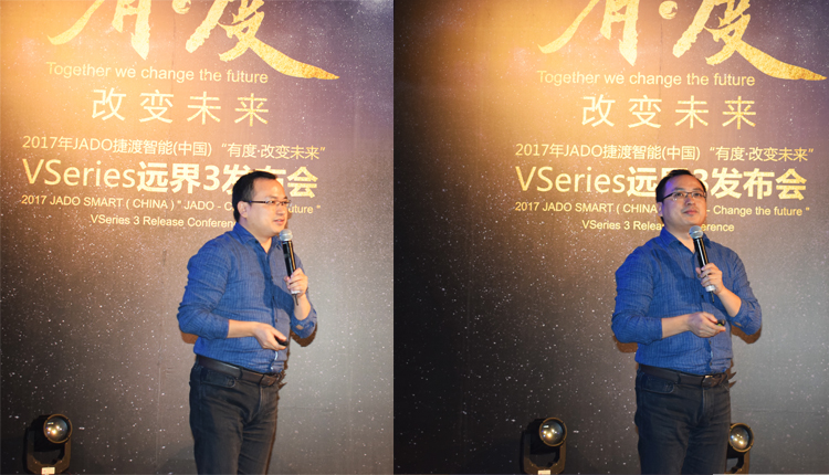 會上,JADO捷渡智能(中國)產品總監吳樂明先生上臺致辭,為大家詮釋了 VSeries遠界系列產品的設計理念。