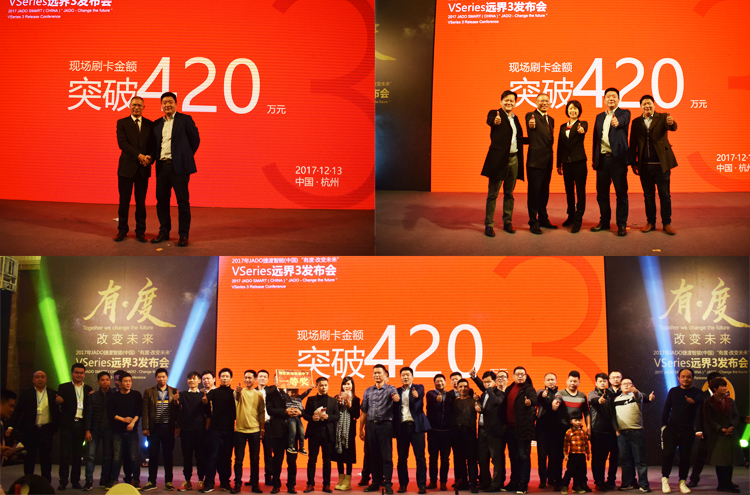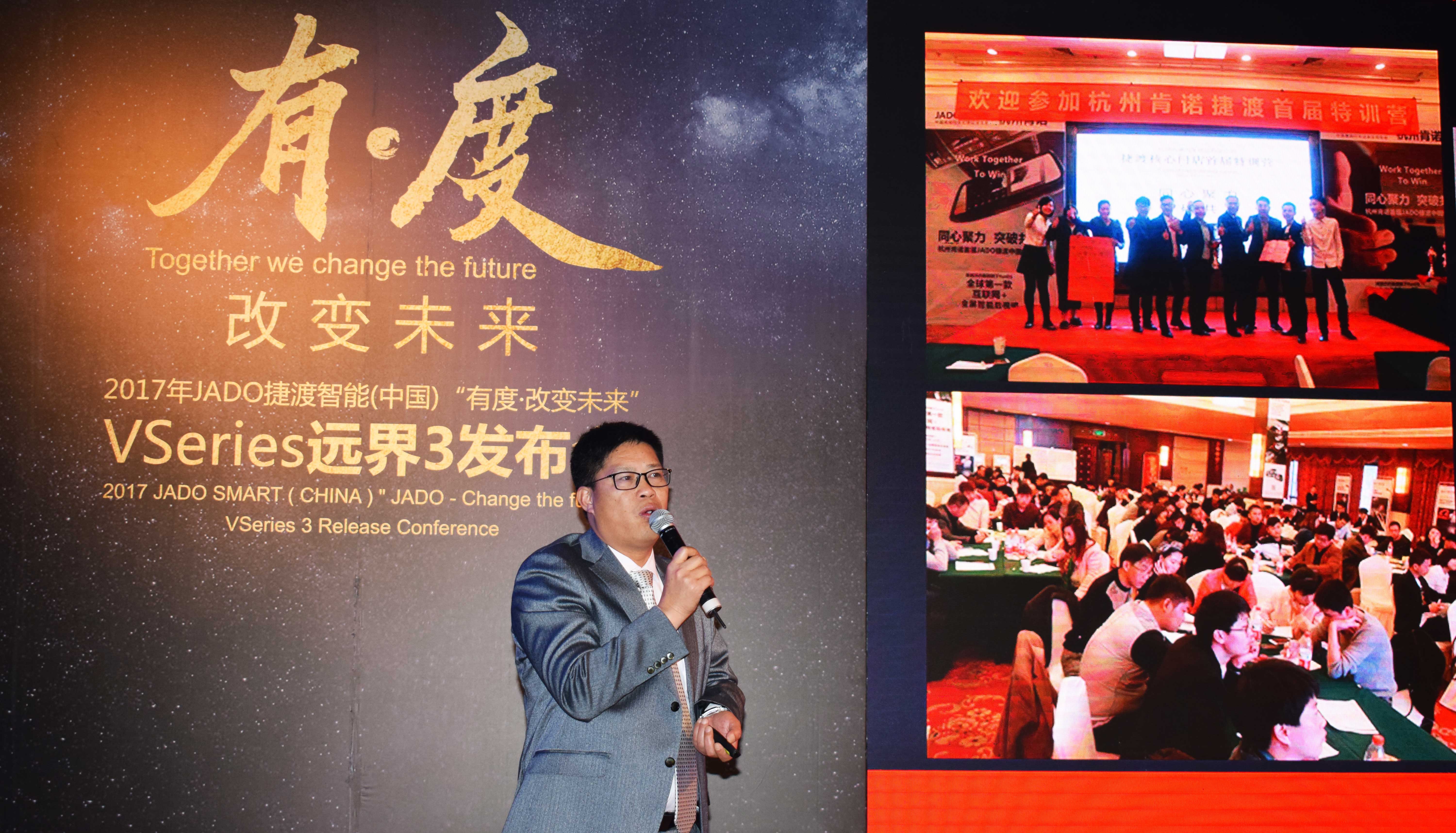2017年12月13日,由JADO捷渡智能(中國)浙江省區戰略合作伙伴杭州肯諾汽車用品有限公司主辦,以“有·度——改變未來”為主題的“JADO捷渡智能(中國)VSeries遠界3超高清智能流媒體后視鏡發布會”在杭州海外海國際酒店隆重召開。