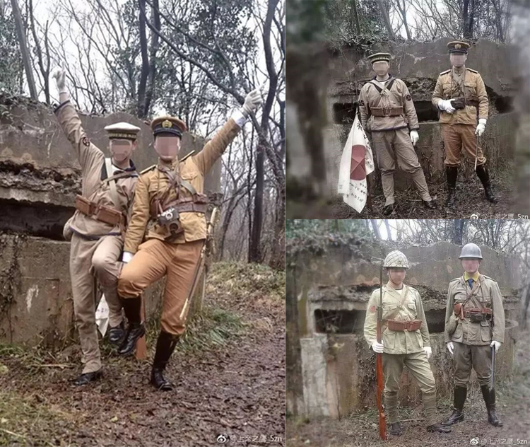 近日,有兩名青年身穿侵華日軍軍裝在南京紫金山抗戰遺址留影,并上傳網絡。2月20日,大年初五,網友@上帝之鷹_5zn 在微博發出了一組照片揭露此事。