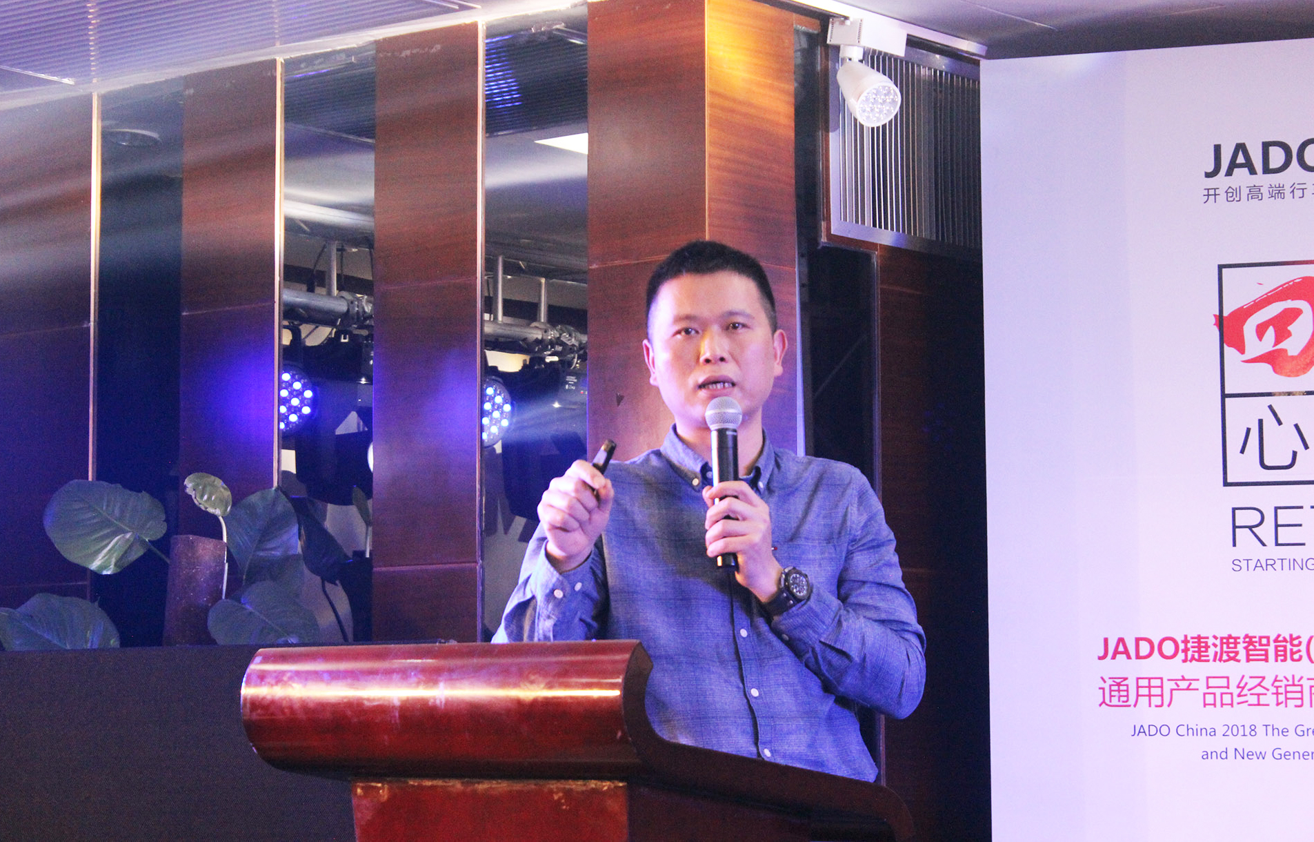 隨后,JADO捷渡智能(中國)營銷中心總經理陳問文先生在會上就新產品應當如何迅速占領市場,分享了終端市場的制勝之道。還進一步闡述如何實現新理念的創新,極大地吸引了與會嘉賓的注意力。