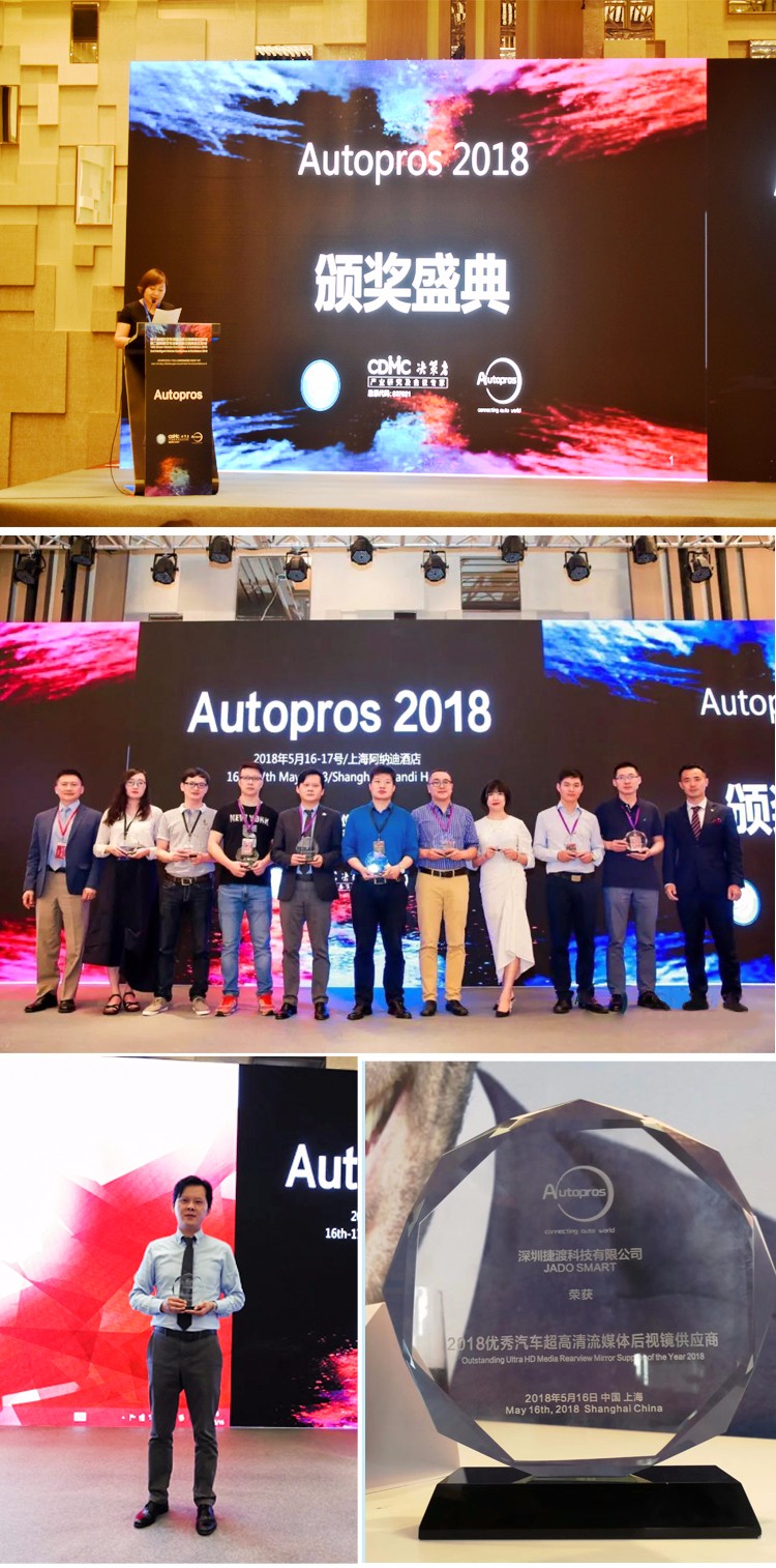 JADO捷渡智能(中國)作為大會現場唯一受邀的行車記錄儀行業代表,經過組委會以及前裝車廠的專業評選,最終榮獲了“優秀汽車超高清流媒體后視鏡供應商”大獎,JADO捷渡智能(中國)營銷中心副總經理劉赟先生代表出席并領獎,讓前裝車廠對JADO捷渡智能(中國)流媒體后視鏡有了深刻的了解。