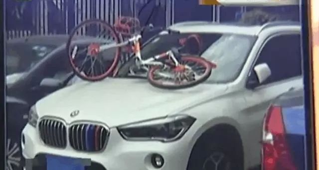 從艾女士當時拍攝的照片來看,車子的引擎蓋上有一輛共享單車,車頂有一團稻草,車子右前側大燈也碎了,除此之外,車身四周都是劃痕。據初步估計,車損在一萬塊錢左右。