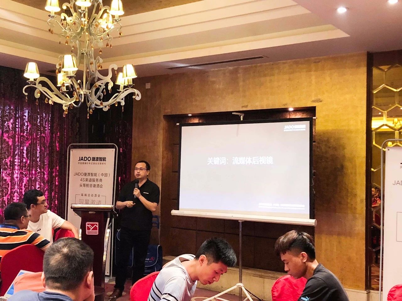 之后,是各位4S渠道服務商最在意的,也是迫切想要了解的環節。JADO捷渡智能(中國)產品總監吳樂明先生為大家就4S渠道專供產品研發規劃做了詳細的講解。并重點介紹了超高清智能流媒體后視鏡。