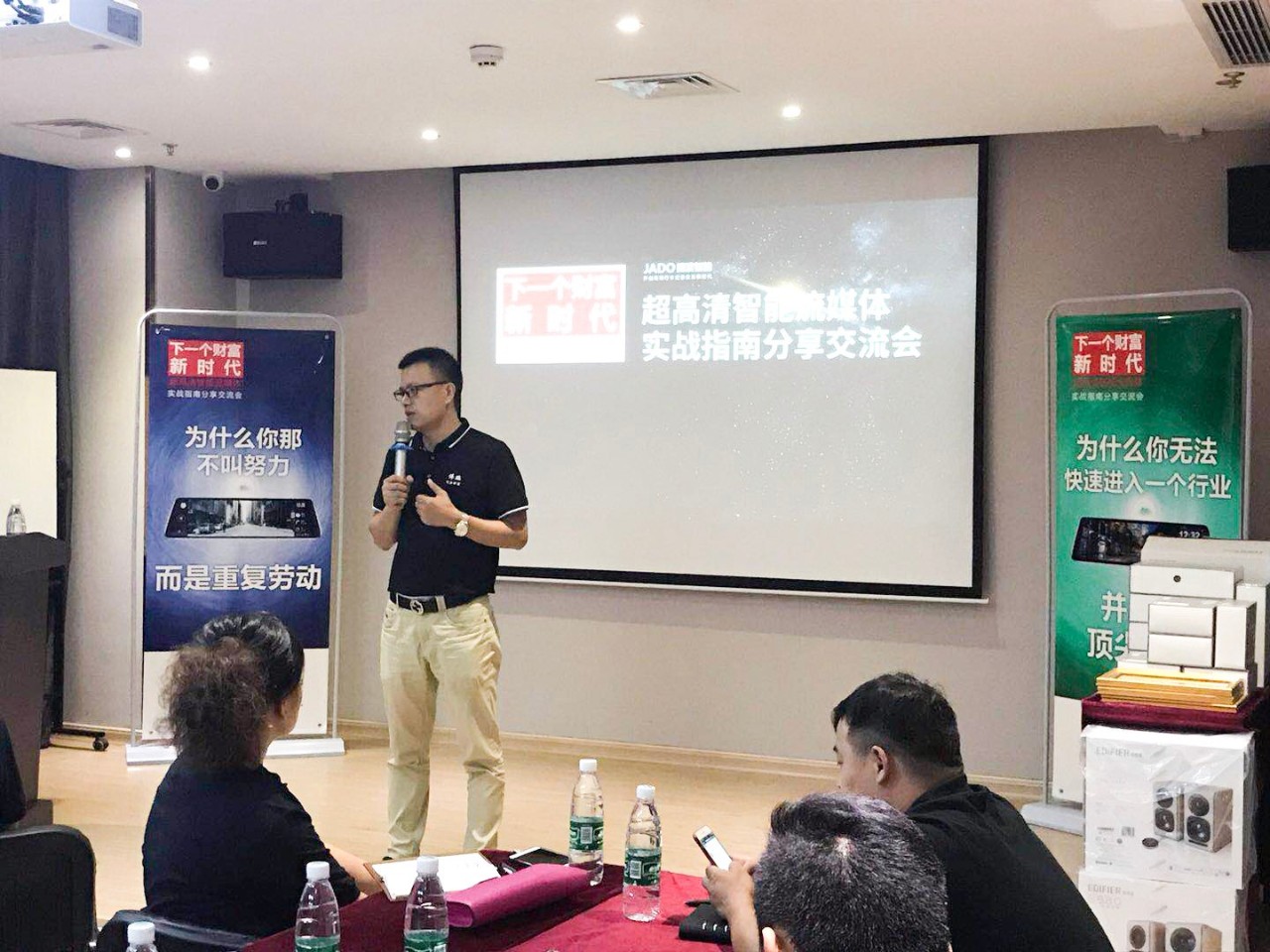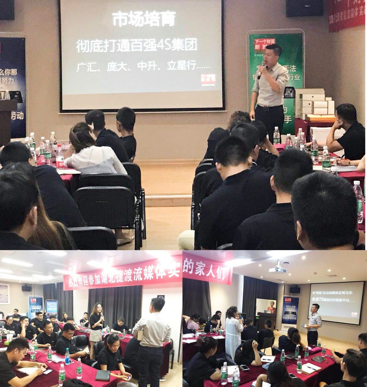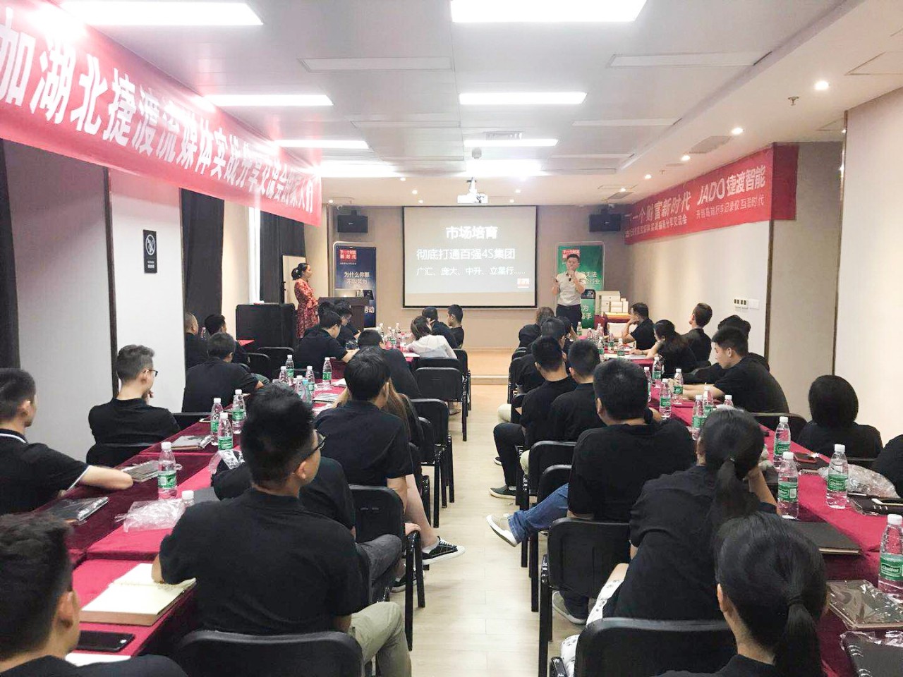 會上,JADO捷渡智能(中國)戰(zhàn)區(qū)負責人杜新先生,也做了分享和交流,杜新先生首先為大家分享了VSeries遠界3——超高清智能流媒體后視鏡產品的銷售技巧, 講解了產品在未來的發(fā)展空間和趨勢,年輕化和創(chuàng)新的商業(yè)模式將會成為新一代的主流。并通過對目前全國一些優(yōu)秀終端店的成功經驗的總結,以及不同區(qū)域的市場特點的分析,讓現場60余家終端店老板獲取到了有價值的分享,將此次交流培訓會推向了高潮。
