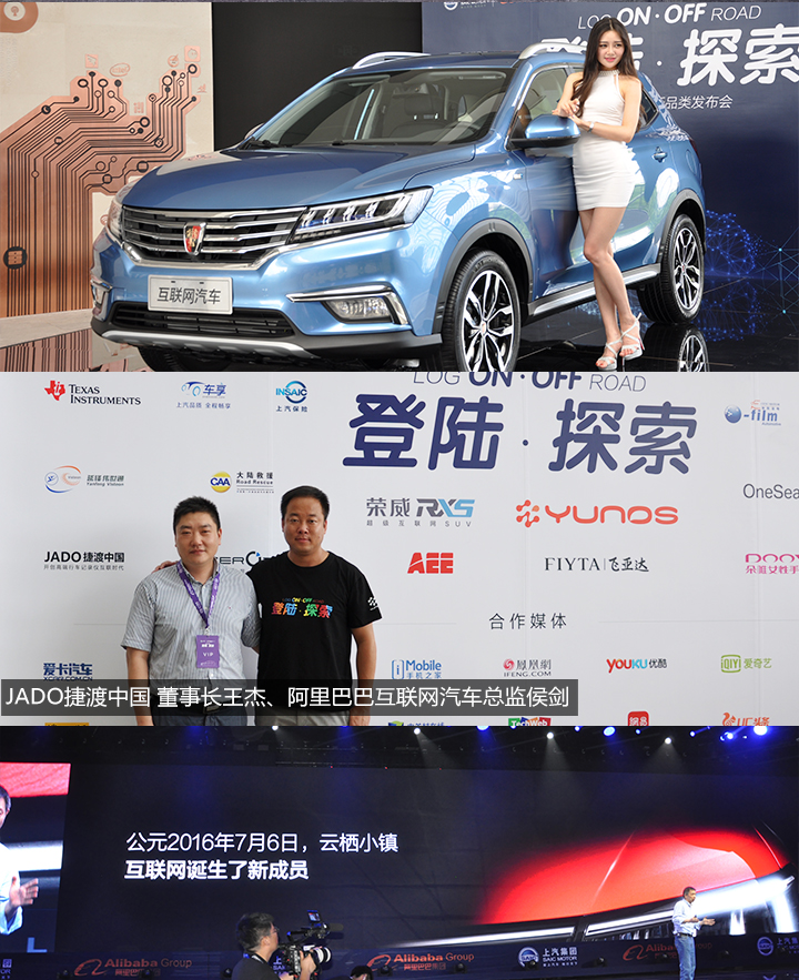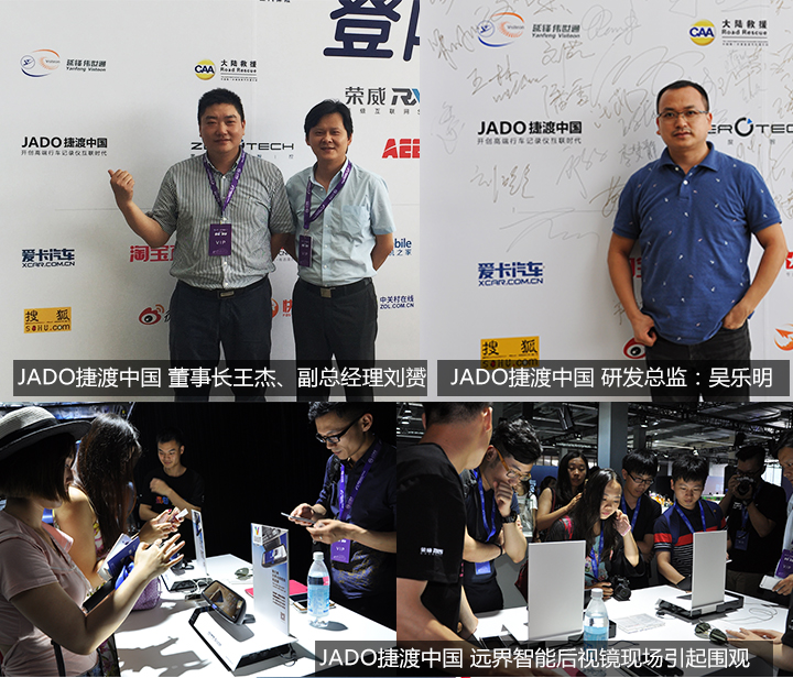 作為阿里巴巴YunOS的合作品牌、榮威RX5車內智能后視鏡的唯一支持單位、現場智能后視鏡唯一代表,JADO捷渡中國董事長王杰、JADO捷渡中國(上海)營銷中心副總經理劉赟以及產品研發總監:吳樂明先生受邀出席了此次發布會。