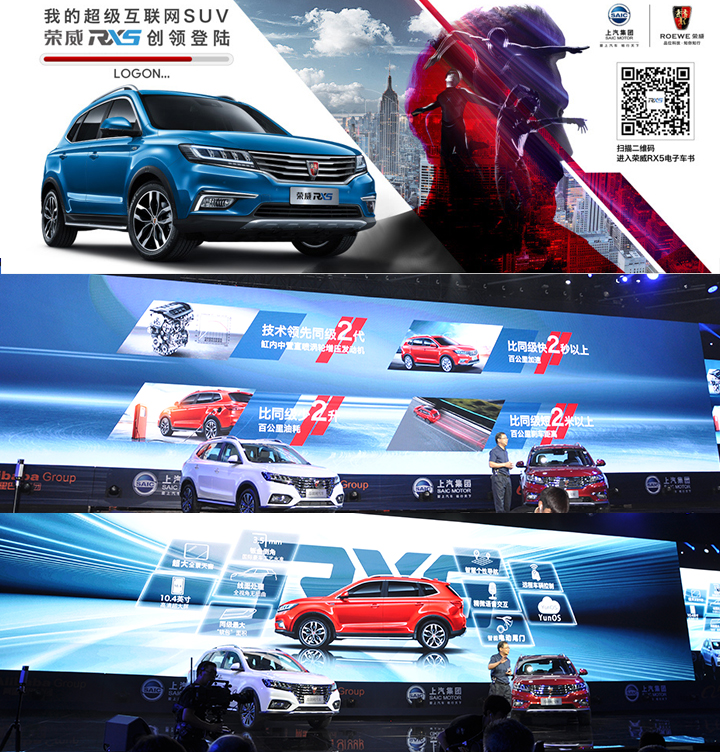 阿里和上汽合作推出的互聯網汽車榮威RX5于6日下午在杭州云棲小鎮發布,阿里巴巴創始人馬云、上汽集團董事長陳虹、阿里巴巴CEO張勇、阿里巴巴首席技術官王堅、錘子科技羅永浩、知名影視明星王珞丹等現身發布會現場。鳳凰衛視主持人許戈輝擔任本次發布會主持。