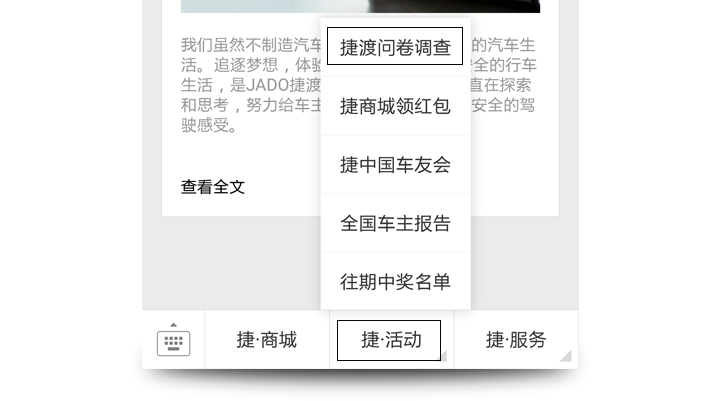 2016年03月29日~2016年04月06日 【參與方式】 關(guān)注并打開公眾號[捷渡中國] 點擊[捷·活動]--[捷渡問卷調(diào)查] 即可參與問卷調(diào)查 問卷調(diào)查結(jié)束后 將有1次抽獎機會